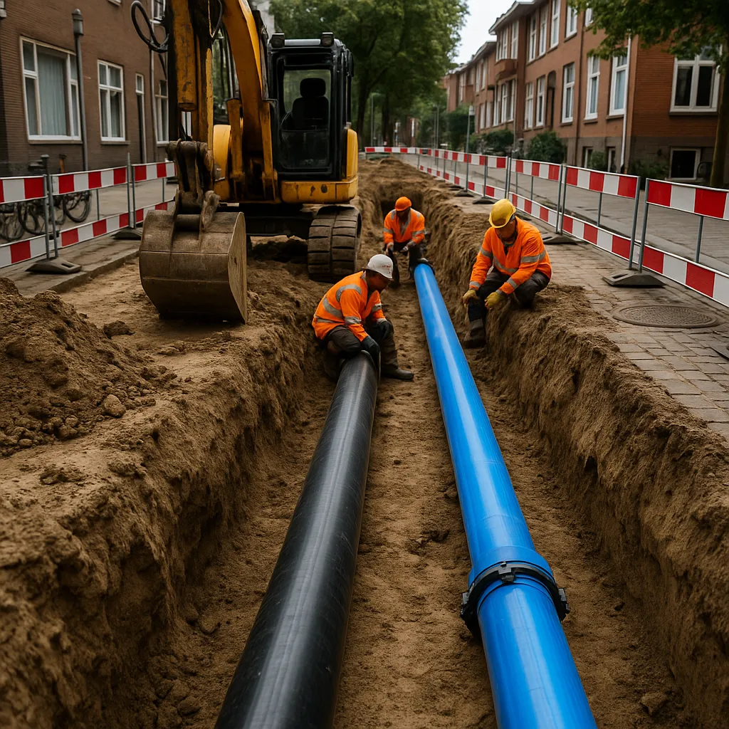 Door de groei van de wijk was uitbreiding van het warmtenet noodzakelijk. Wij hebben hogedruk leidingen geïnstalleerd volgens de strengste